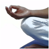 ![]() | Je plaatst je handen op je knieën met de handpalmen naar boven gericht. Dan breng je de top van je wijsvinger tegen de top van je duim. De druk tussen je wijsvinger en je duim is licht genoeg om je bloed te voelen stromen. De andere drie vingers zijn gestrekt en ontspannen. Let op dat je geen knik in je pols maakt. Je pols ligt op je knie. |
